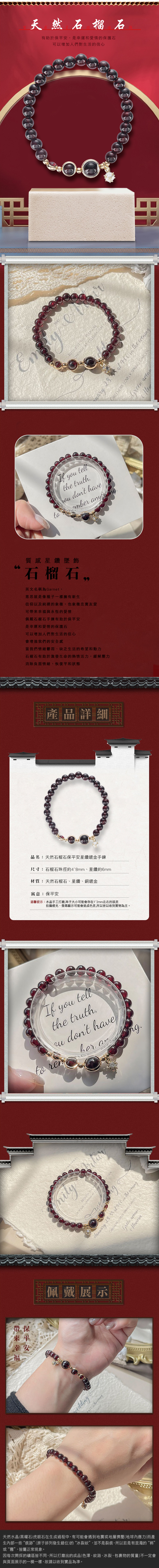 石榴石:象徵忠實友愛,可帶來幸福與永恆的愛情,有助於保平安,是幸運和愛情的保護石。