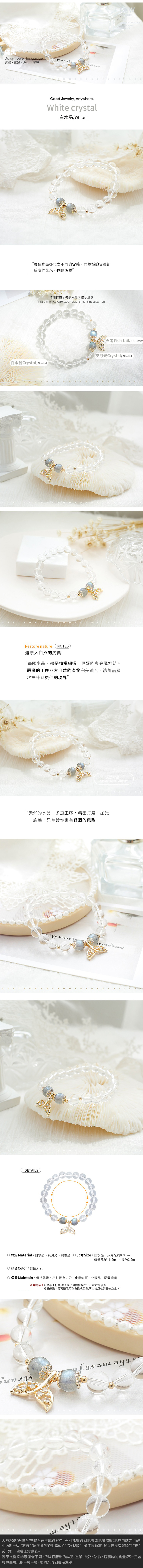 白水晶:能使人心靈寧靜,凈化四周或自身的負能量,帶來好運,也有辟邪的作用。